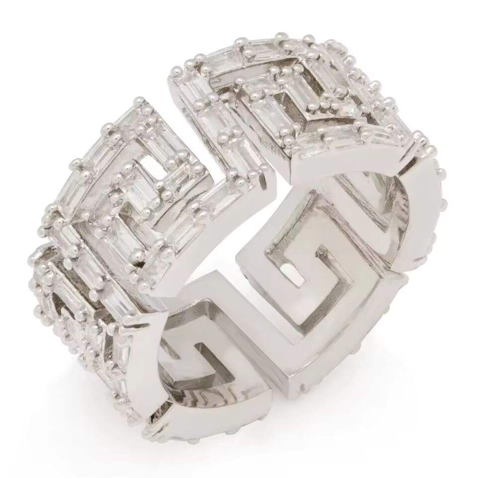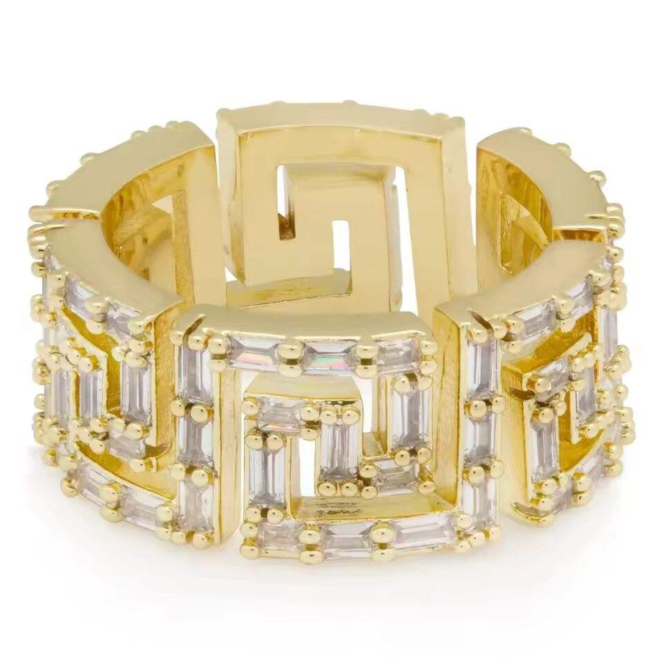 แหวนรูปทรงกรีกประดับเพชรหรูหรา ชุบทอง ประดับเพชรทรงบาแกตต์ สำหรับผู้ชาย เครื่องประดับฮิปฮอป