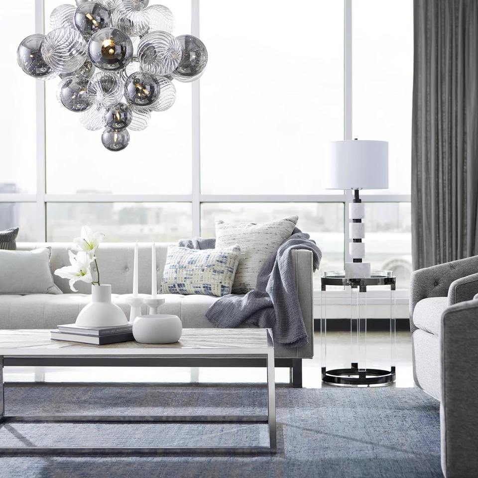 โคมไฟระย้าทรงกลมแก้วสีดำรูปทรงเพชรหรูหรา สไตล์โมเดิร์นเรียบง่าย โครงสแตนเลส ไฟ LED ปรับความสูงได้