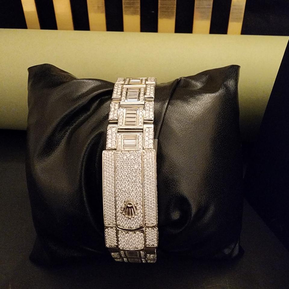 นาฬิกาเพชรสุดหรูนาฬิกาควอทซ์ญี่ปุ่นสุดคูสซอไนต์น้ำแข็งแบบเต็มประกายระยิบระยับ