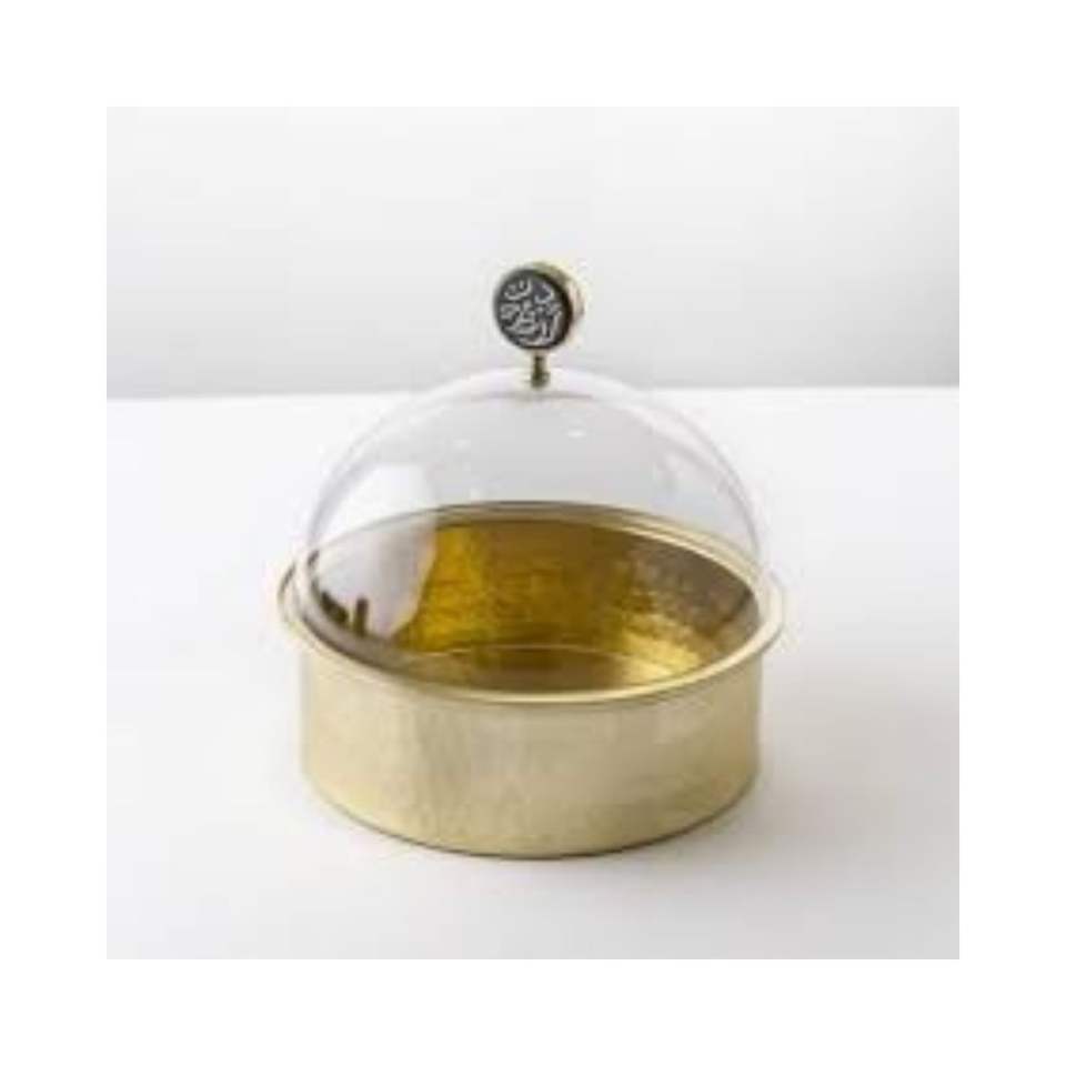 ชามใส่ผลไม้โลหะหรูหราพร้อมฝาครอบแก้ว สำหรับเสิร์ฟอินทผลัม ถั่ว ใช้ในงานเลี้ยงรอมฎอน อิฟตาร์ หรือบนโต๊ะอาหาร