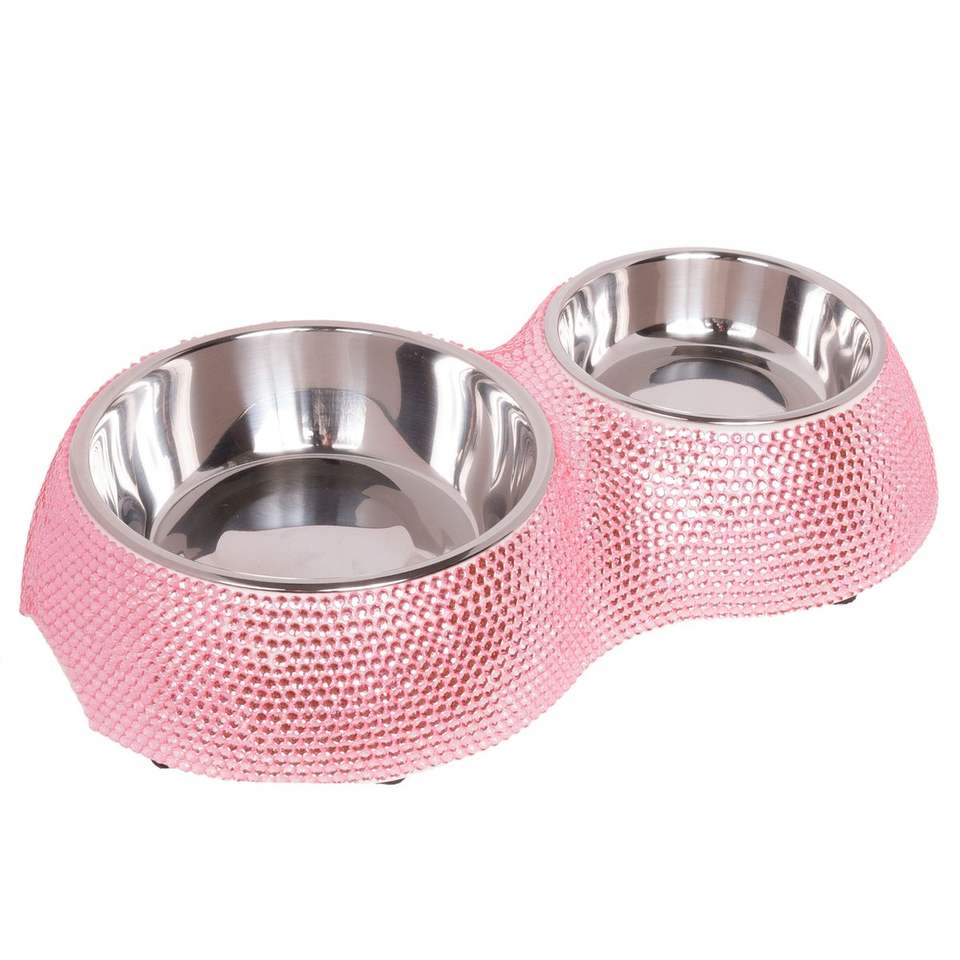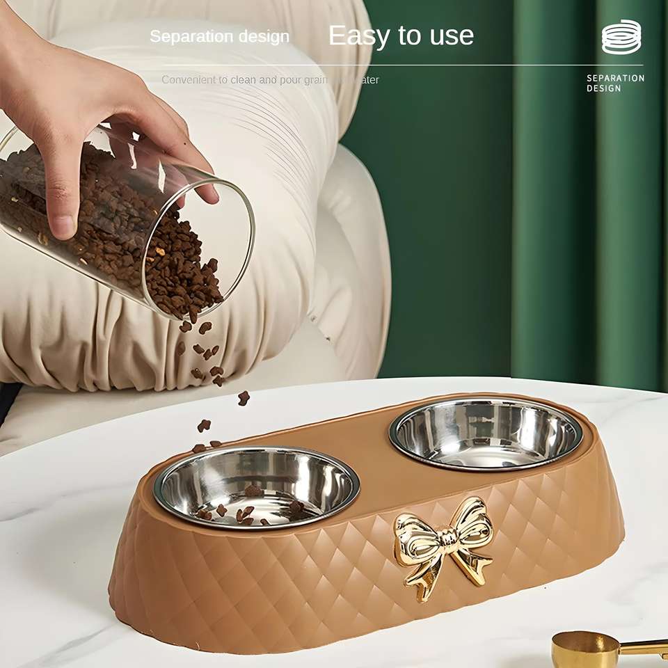 ชามอาหารสัตว์เลี้ยงคู่แบบหรูหราพร้อมแผ่นสแตนเลสและฐานกันลื่นสำหรับสุนัข แมว ลูกสุนัข และลูกแมว