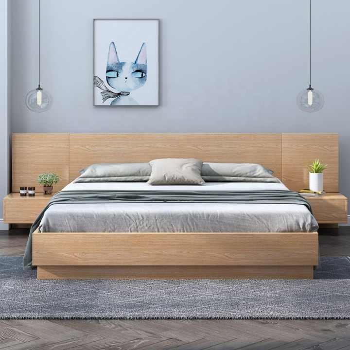 ชุดเตียงไม้ขนาดคิงไซส์หรูหรา พร้อมลิ้นชักเก็บของเมลามีน หัวเตียง และเฟอร์นิเจอร์ห้องนอนทันสมัย