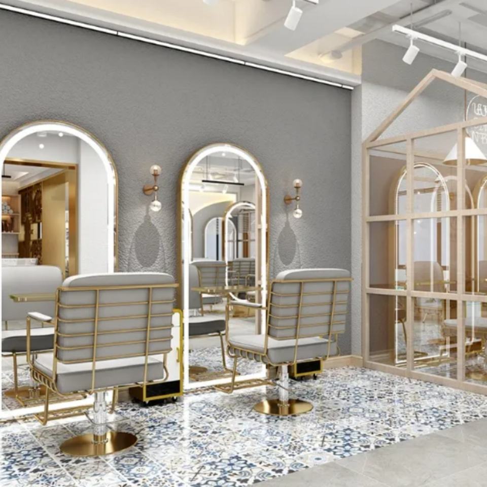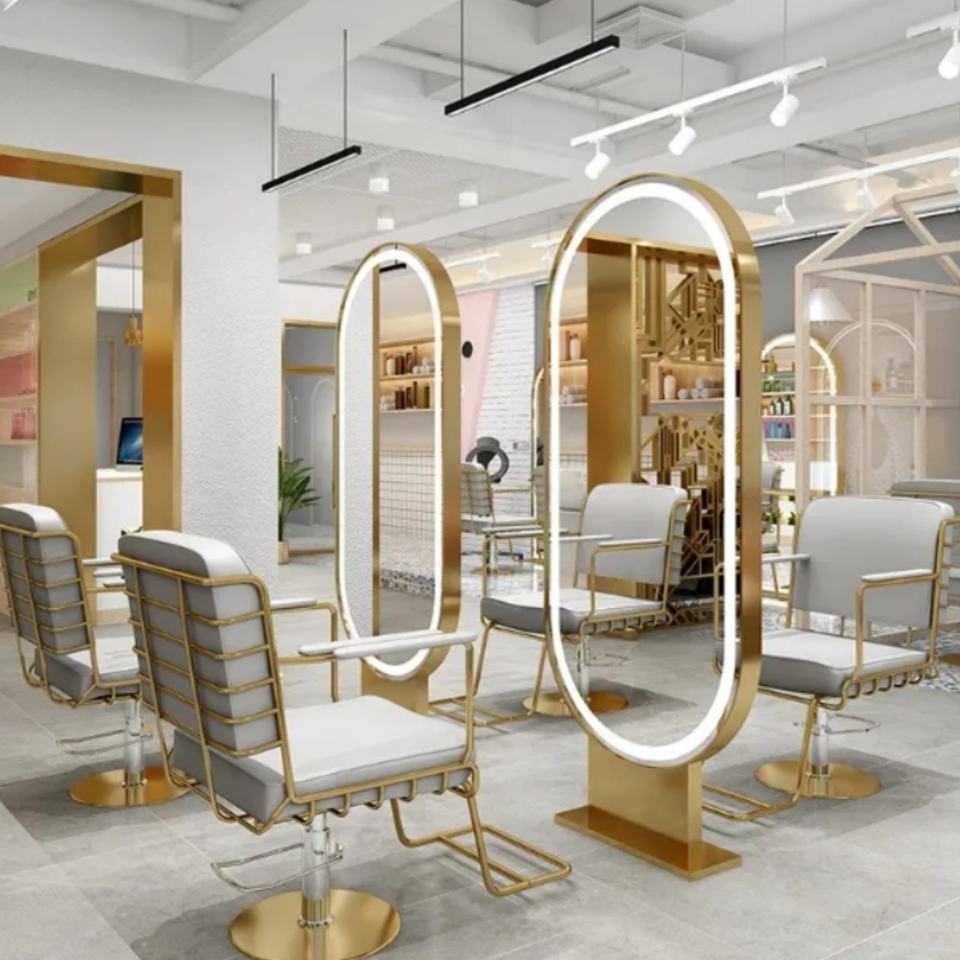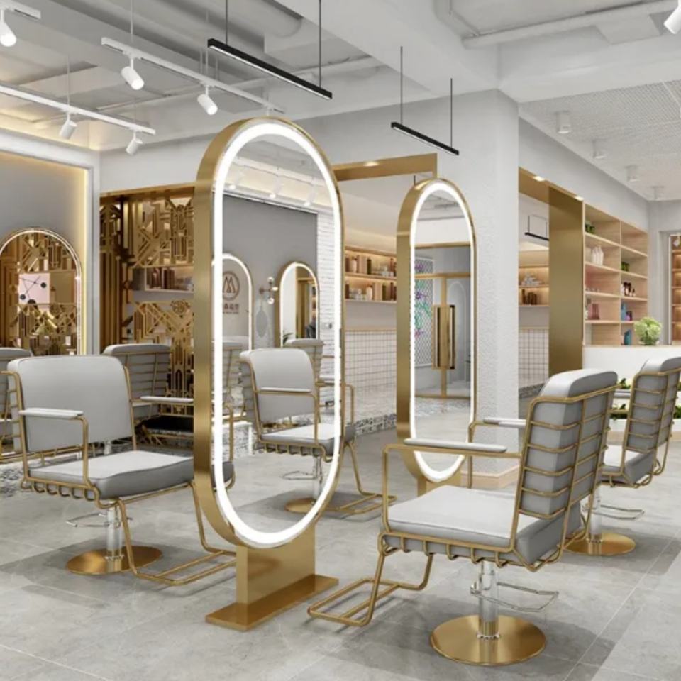 กระจก LED สองด้านสุดหรู ดีไซน์ทันสมัย โครงโลหะ สำหรับร้านตัดผมและร้านเสริมสวย