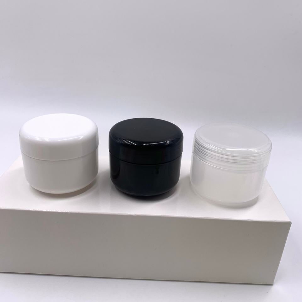 กระปุกครีมสองชั้นแบบหรูหรา ขนาด 5 กรัม 10 กรัม 15 กรัม 30 กรัม 50 กรัม สีดำ ผลิตจากพลาสติก PP สำหรับโลชั่นและครีม