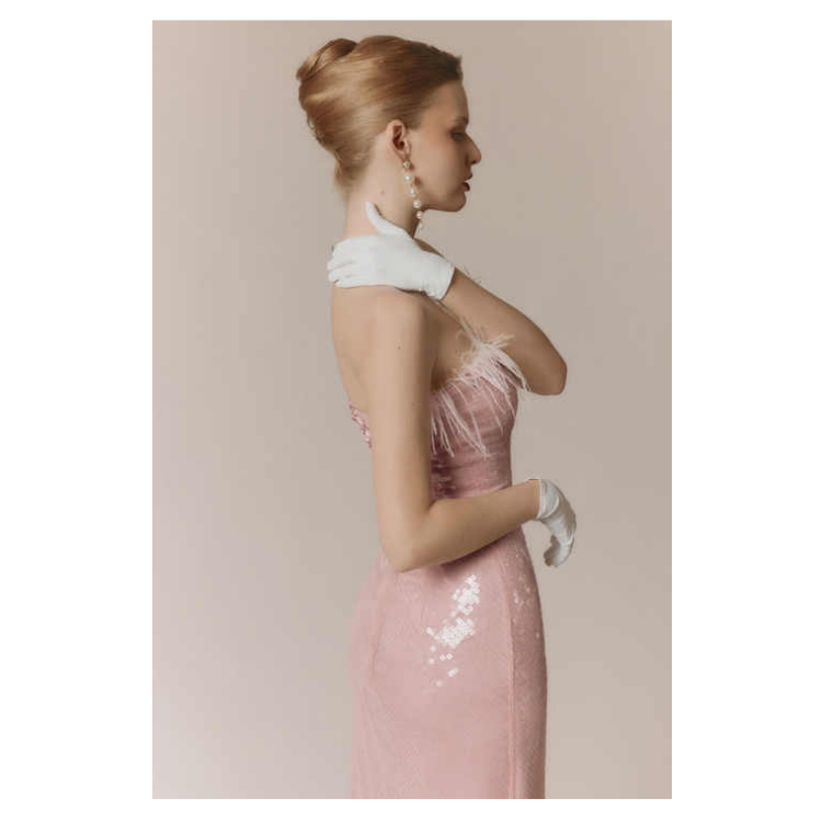 ชุดเดรสหรูสำหรับงานปาร์ตี้ ชุดราตรี Amour ผ้าโพลีเอสเตอร์ 100% เสื้อผ้าผู้หญิง ดีไซน์เนอร์ สไตล์หรูหรา บริการ ODM
