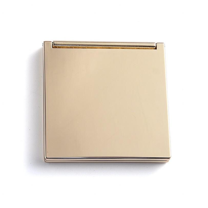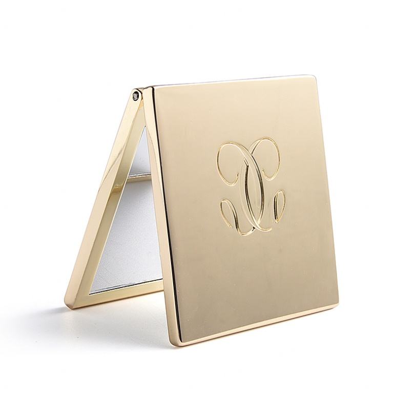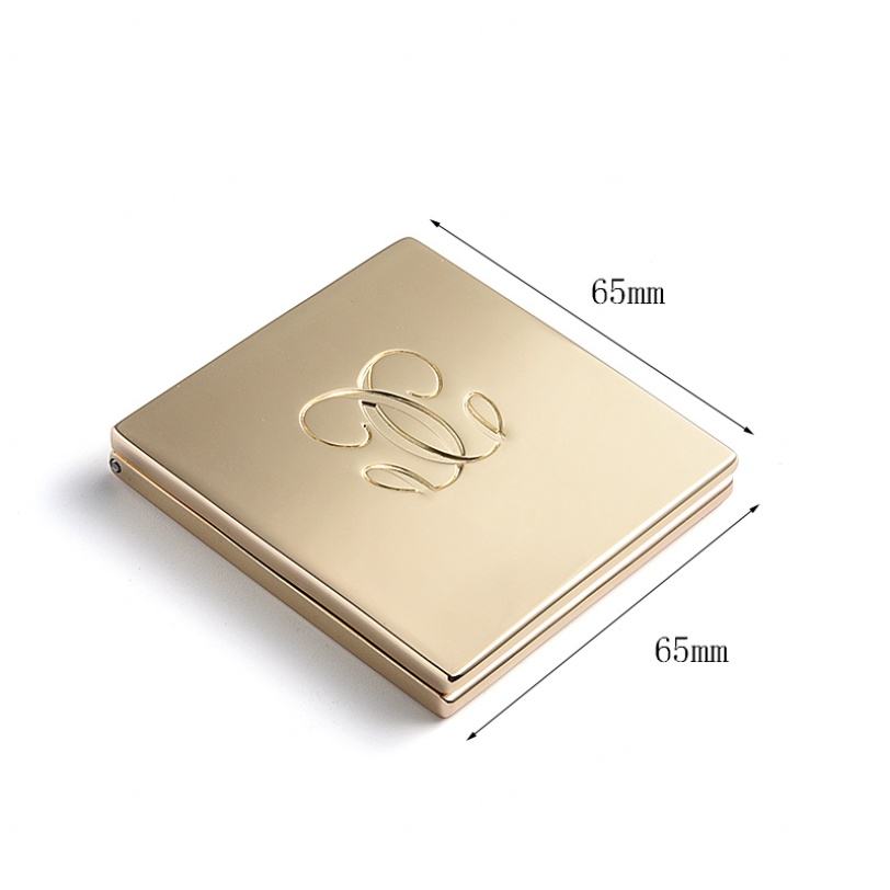 กระเป๋าเครื่องสำอางทรงสี่เหลี่ยมหรูหรา ดีไซน์สองด้าน พร้อมโลโก้ชุบทอง กระจกแต่งหน้าขนาดกะทัดรัด