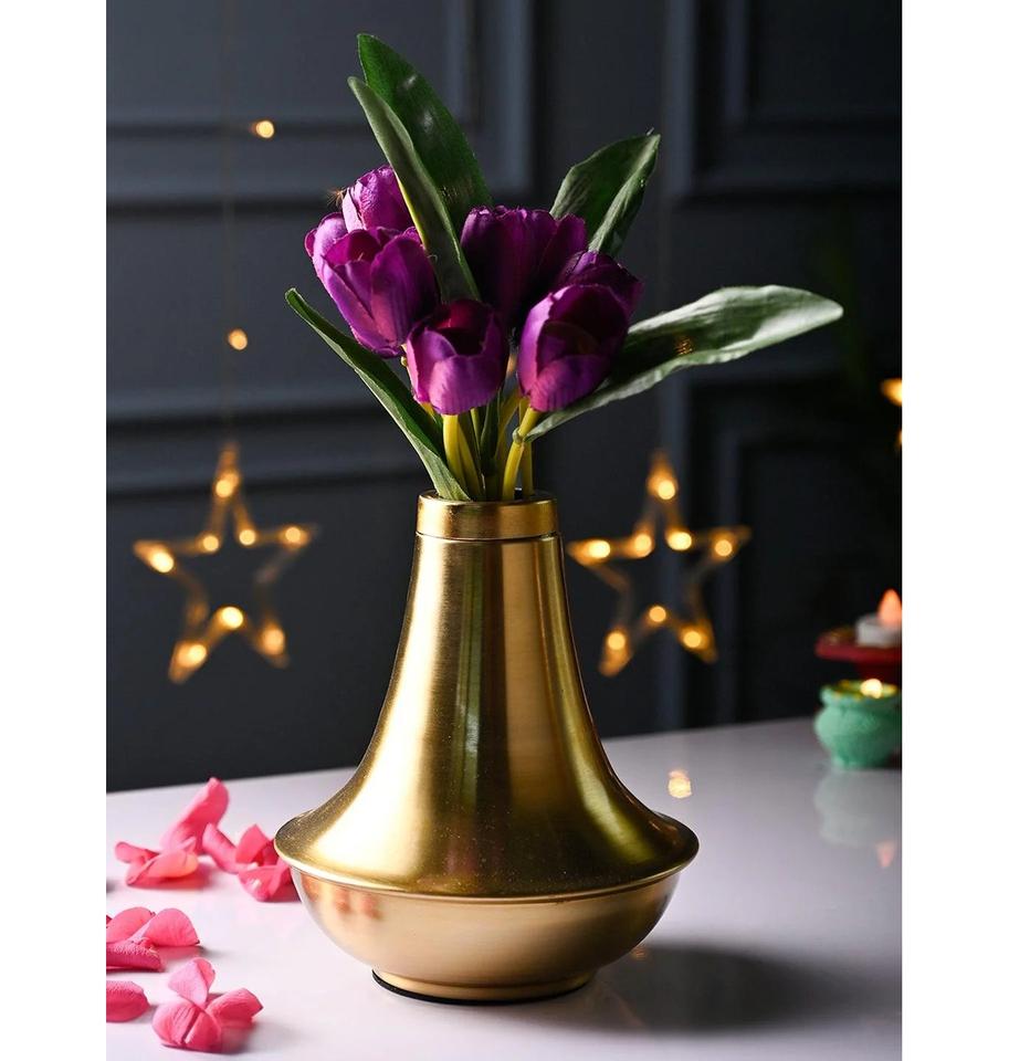 แจกันดอกไม้โลหะสองโทนหรูหราพร้อมสีทองเรียบและการตกแต่งสีขาวเหมาะสำหรับการตกแต่งบ้านหรือโรงแรม