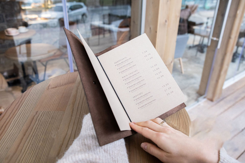 ที่ใส่เมนูหนังพับได้ ทนทาน หรูหรา สำหรับร้านอาหาร คาเฟ่ โรงแรม พร้อมโลโก้สั่งทำ ดีไซน์เติมได้ รุ่น LMC-0062
