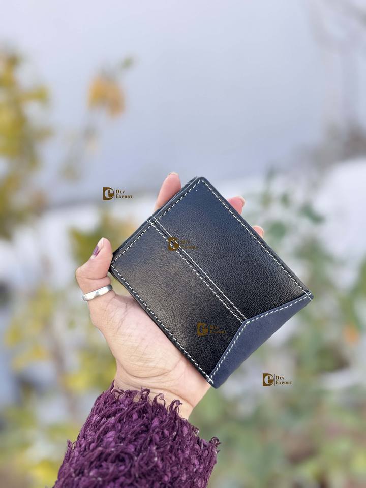 กระเป๋าสตางค์หนังแท้คุณภาพสูง ป้องกัน RFID สำหรับใส่บัตรเครดิต บัตรประชาชน บัตรธุรกิจ แบบพับสองตอน ดีไซน์บางเฉียบ สำหรับผู้ชาย