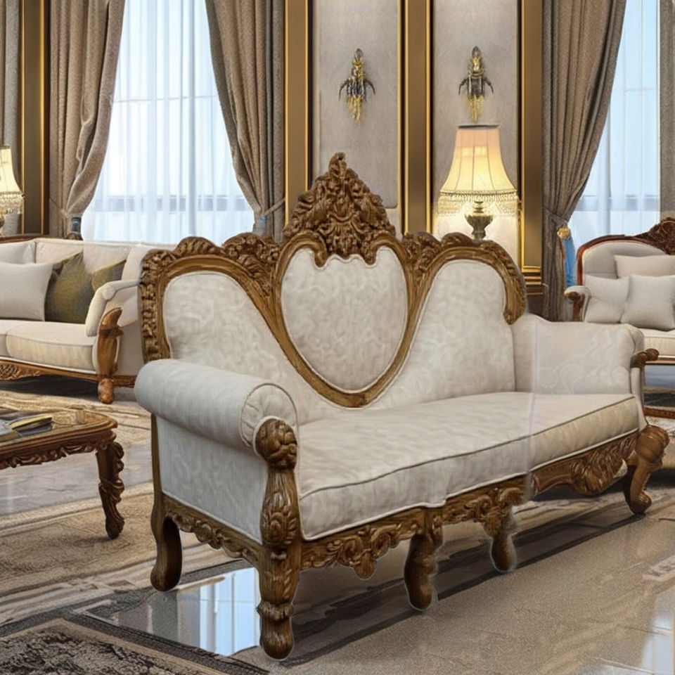 ชุดโซฟาไม้แกะสลักสไตล์วิคตอเรียนสุดหรู ทนทาน แบบฝรั่งเศสโบราณ หุ้มผ้า สำหรับห้องนั่งเล่น