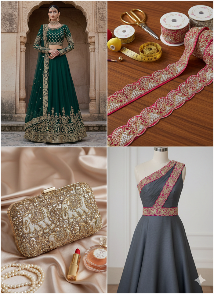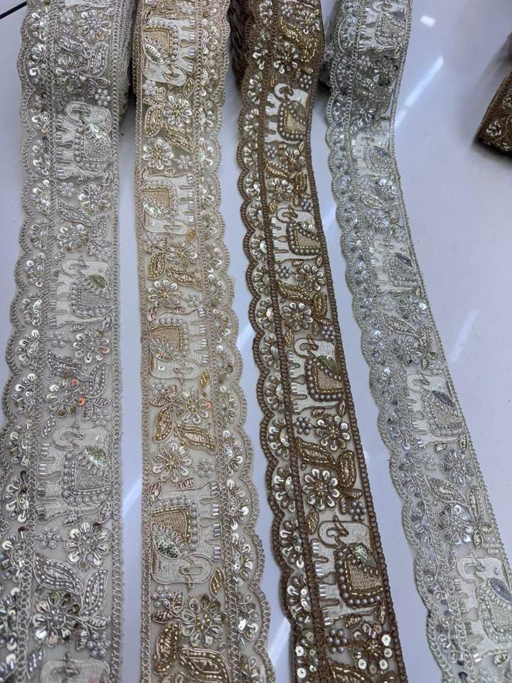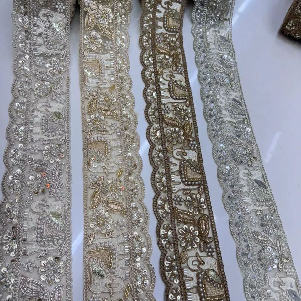 Luxury Eco-Friendly Artisanal Scalloped Lace Trim with Ornate Elephant & Floral Embroidery 2 Inch 9 Meter Romantic Fancy