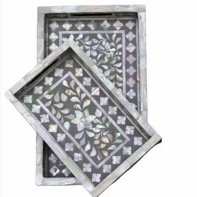 ถาดเสิร์ฟอาหารเช้า ผลไม้ กาแฟ ชา รูปทรงสี่เหลี่ยมผืนผ้า หรูหรา เป็นมิตรกับสิ่งแวดล้อม ตกแต่งด้วยงานฝังกระดูก ราคาประหยัด สำหรับใช้ในครัว