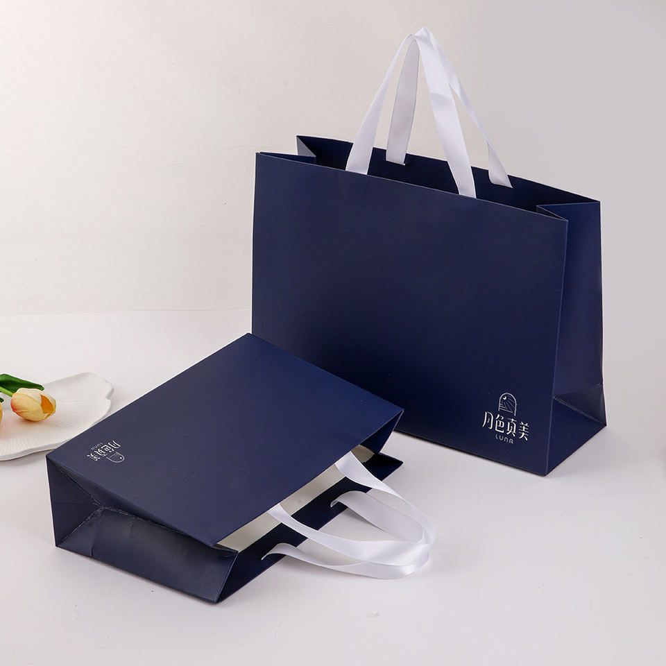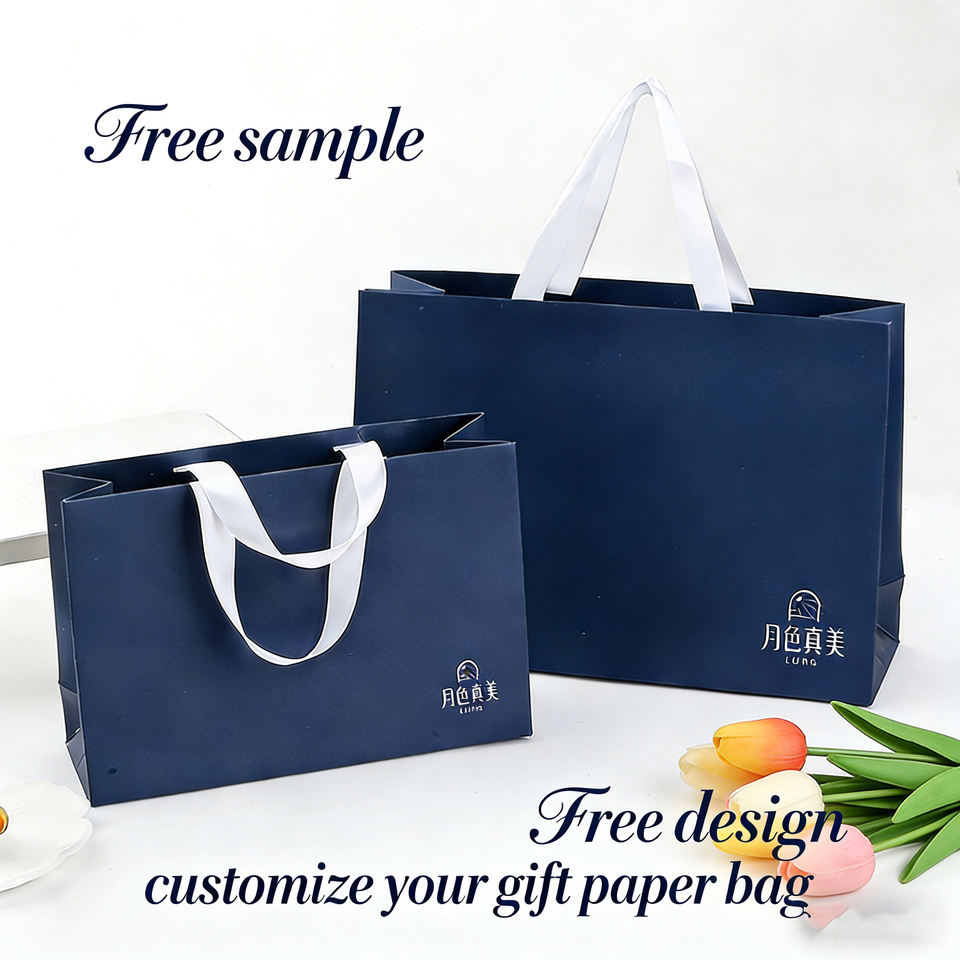 ถุงกระดาษสีเขียวรักษ์โลก คุณภาพดี ทนทาน พิมพ์โลโก้ปั๊มทอง พร้อมริบบิ้นพิมพ์ลายตามสั่ง สำหรับบรรจุภัณฑ์งานฝีมือเครื่องประดับ