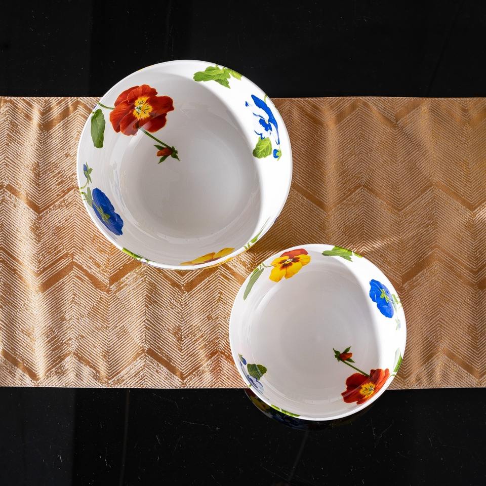ชุดชามสลัดลายดอกไม้เคลือบใต้ผิวแบบยุโรป 2 ใบ ผลิตจากพอร์ซเลนคุณภาพสูง เป็นมิตรต่อสิ่งแวดล้อม เหมาะสำหรับงานแต่งงาน