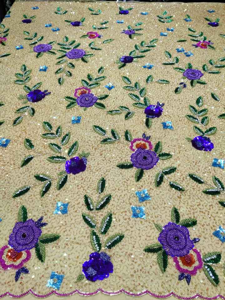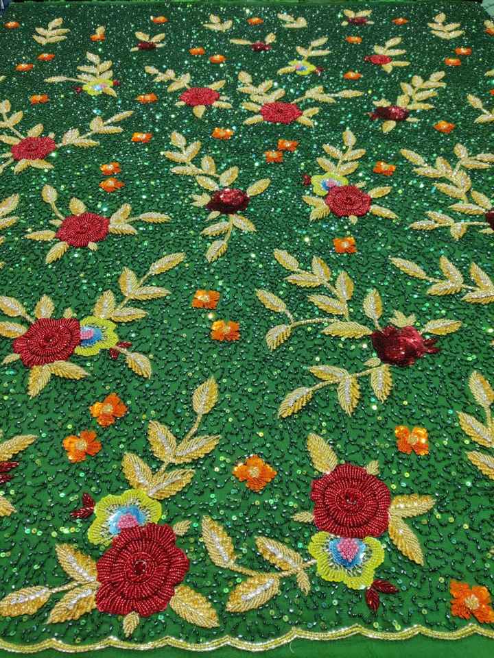 เลื่อมปักด้วยมือเป็นมิตรกับสิ่งแวดล้อมสุดหรูปักเลื่อมลายใบไม้สีแดงสีทองเนื้อผ้าฝ้ายออร์แกนิก100% ทอเคลือบเอปพิน