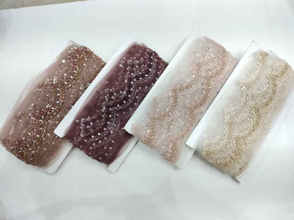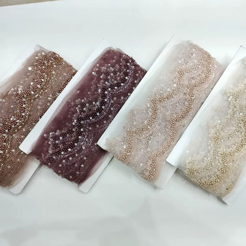 ผ้าลูกไม้ลายฉลุหรูหราเป็นมิตรกับสิ่งแวดล้อม ประดับด้วยลูกปัด ปักลายฝรั่งเศส ลายเรขาคณิต สำหรับชุดแต่งงานและชุดราตรี
