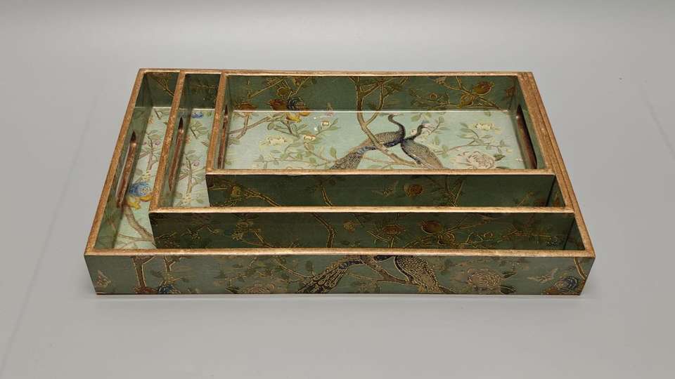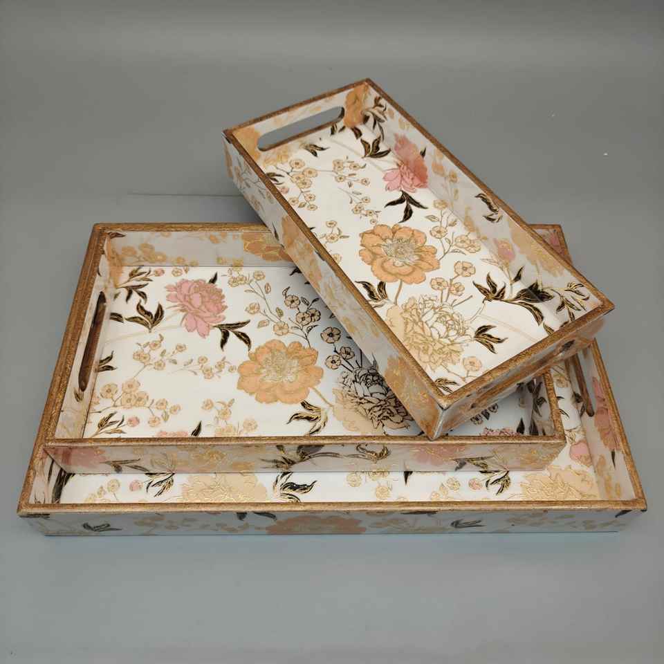 ถาดเสิร์ฟไม้พิมพ์ลายมีนาสุดหรู เป็นมิตรกับสิ่งแวดล้อม ทนทาน ใช้กับเครื่องล้างจานได้ ผลิตด้วยมือ ดีไซน์สีสันสดใส ของตกแต่งบ้านทันสมัย