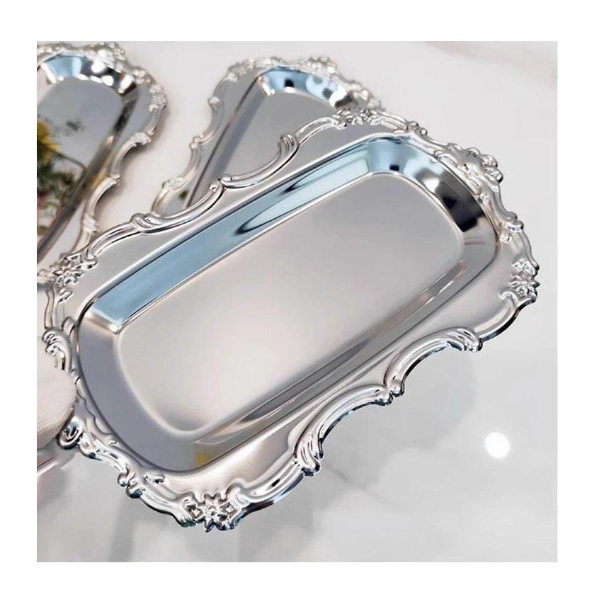 ถาดโลหะทรงสี่เหลี่ยมผืนผ้า หรูหรา เป็นมิตรกับสิ่งแวดล้อม สำหรับเสิร์ฟขนมและของหวาน