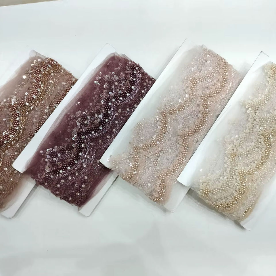 ผ้าลูกไม้ปักลายหรูหราเป็นมิตรกับสิ่งแวดล้อม ประดับด้วยลูกปัด ลายปักฝรั่งเศส รูปทรงเรขาคณิต สำหรับใช้ในชีวิตประจำวัน รุ่น Honey Lace ประดับลูกปัด -D. NO-106