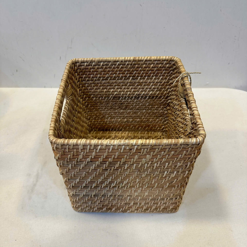 ตะกร้าหวายธรรมชาติทรงสี่เหลี่ยมผืนผ้า หรูหรา เป็นมิตรกับสิ่งแวดล้อม พร้อมเชือก PP