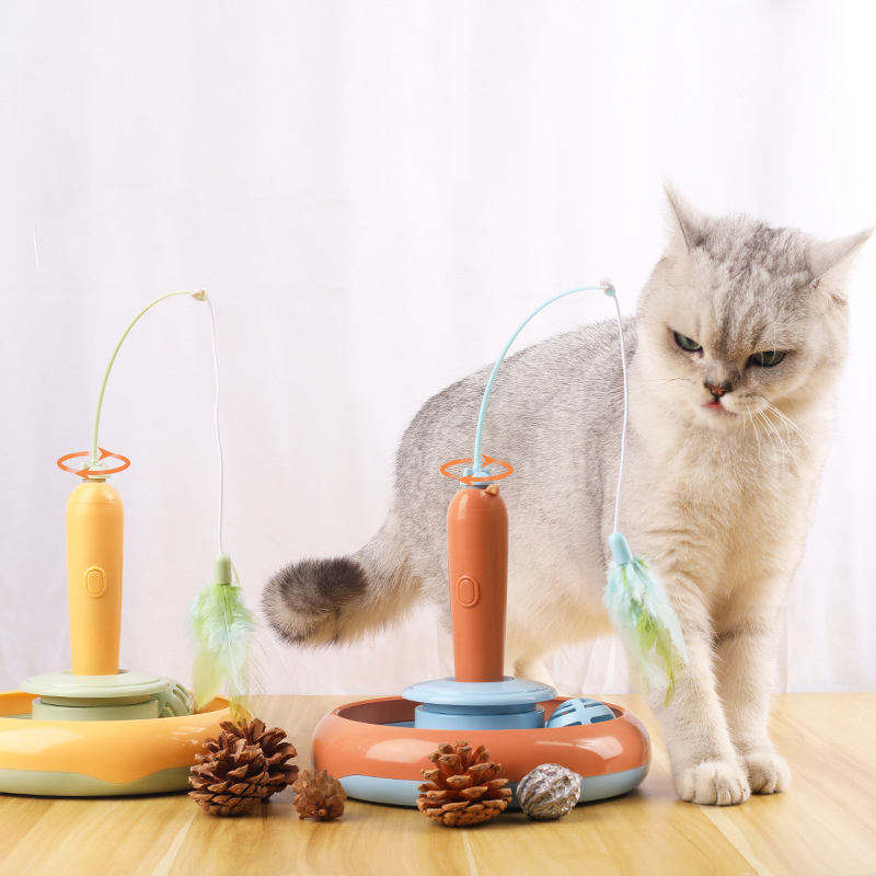 ของเล่นแมวแบบหมุนได้อัจฉริยะ ทันสมัย หรูหรา เป็นมิตรกับสิ่งแวดล้อม พร้อมไม้ล่อแมวแบบอินเทอร์แอคทีฟ สนุกสนานด้วยขนนกไฟฟ้า