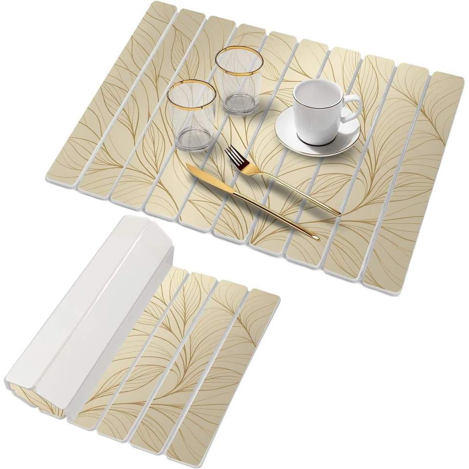 แผ่นรองจานทำจากหินเป็นมิตรกับสิ่งแวดล้อมหรูหราแผ่นรองจานสีทองเส้นหยักแผ่นรองดินไดอะตอมมาเชียสแบบพับได้สีเทา