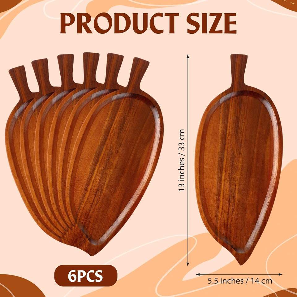 Luxury Eco-Friendly Wooden Leaf Shaped Plates Business Gift Kitchenware Easy Clean