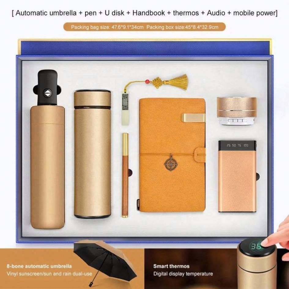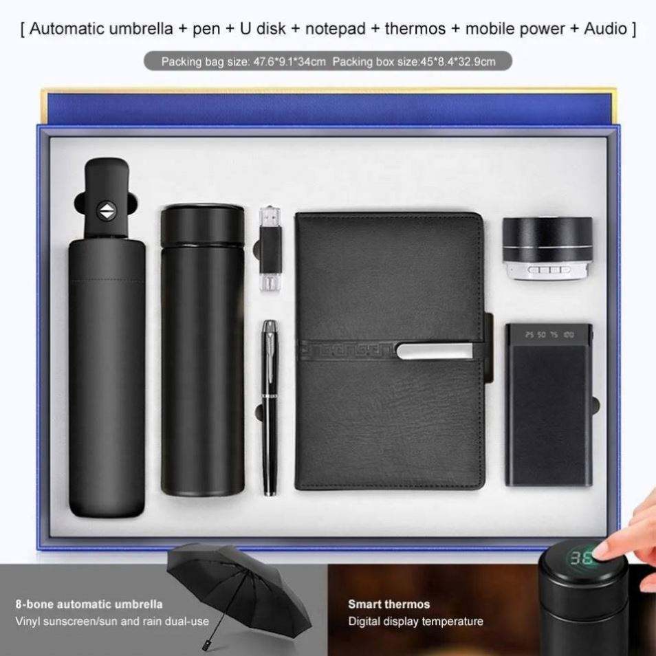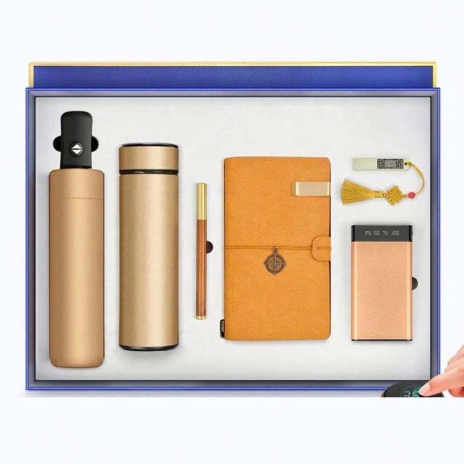 ชุดของขวัญสำหรับองค์กรสุดหรูรักษ์โลก พร้อมกระติกน้ำร้อน LED และสมุดโน้ตธุรกิจพิมพ์แบบ Letterpress พร้อมโลโก้สั่งทำ