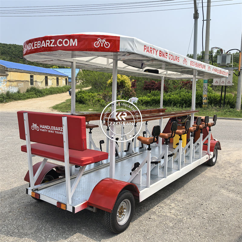 รถจักรยานไฟฟ้าสุดหรูแบบสองมอเตอร์ สำหรับ 8-13 ที่นั่ง แบบเปิดประทุน สำหรับเที่ยวชมสถานที่ ปาร์ตี้บัส จักรยานเบียร์ โครงสร้างเหล็ก ความเร็ว 6 กม./ชม.