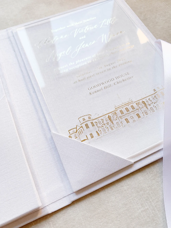 การ์ดอะคริลิคหนา 1-2 มม. + ซองจดหมาย + ตราประทับขี้ผึ้ง + การ์ดตอบรับ