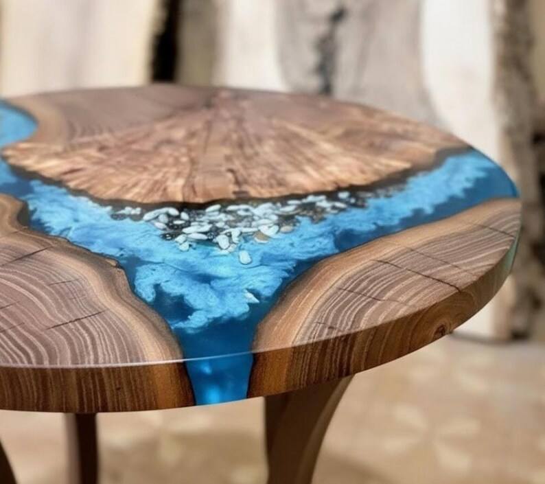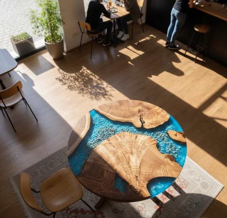 โต๊ะกาแฟเรซิ่นขอบไม้ธรรมชาติ งานฝีมือสุดหรู สง่างาม ออกแบบได้ตามต้องการ เป็นมิตรกับสิ่งแวดล้อม ทำด้วยมือ วาดลายด้วยมือ ตกแต่งด้วยเรซิ่นลายมหาสมุทร สไตล์ชายฝั่ง