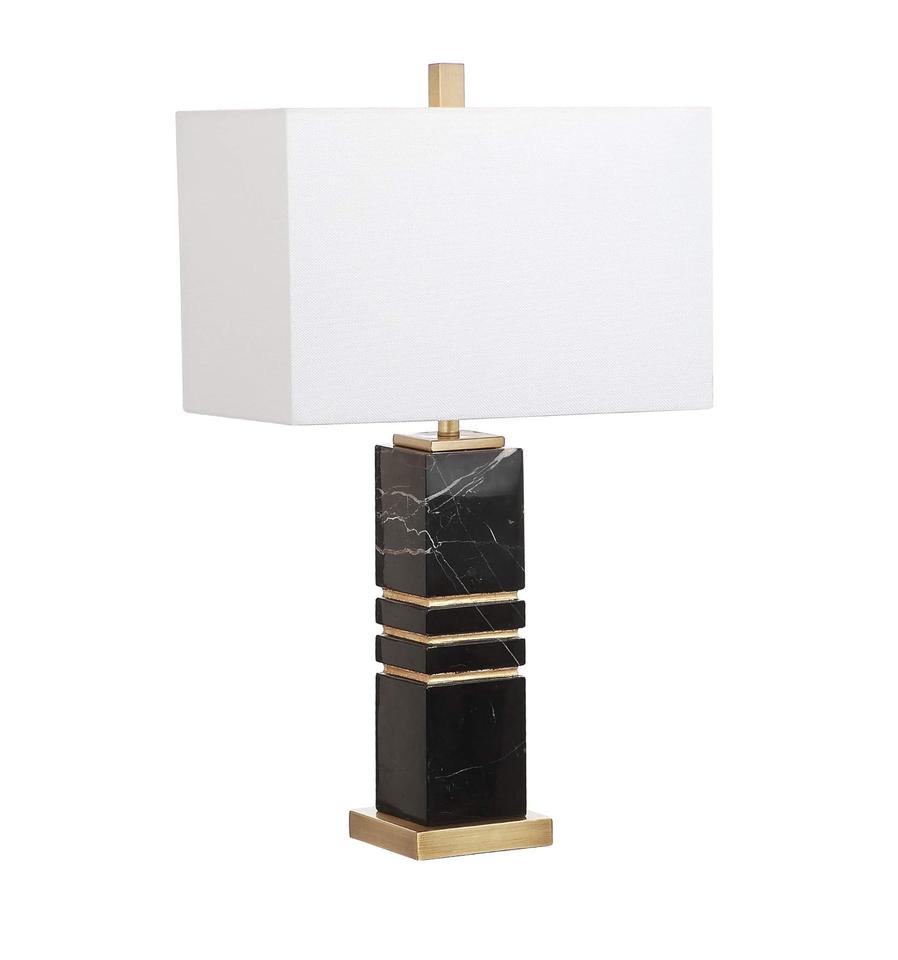 โคมไฟตั้งโต๊ะคุณภาพสูงหรูหราสง่างามในรูปทรงสี่เหลี่ยมผืนผ้าหินอ่อนสีดำสีที่ทันสมัยสำหรับโต๊ะข้างเตียงห้องนั่งเล่น