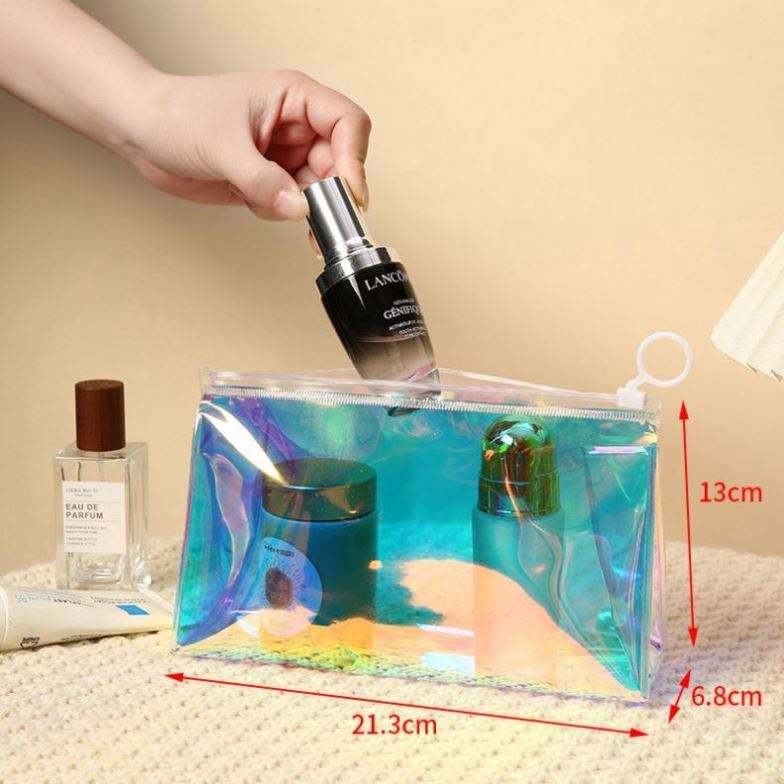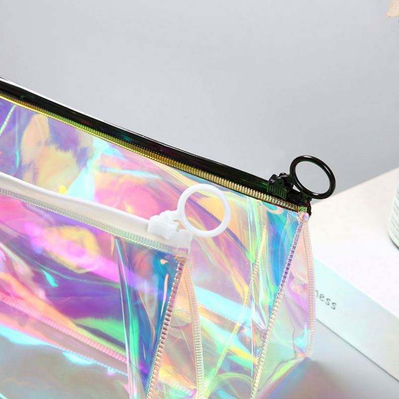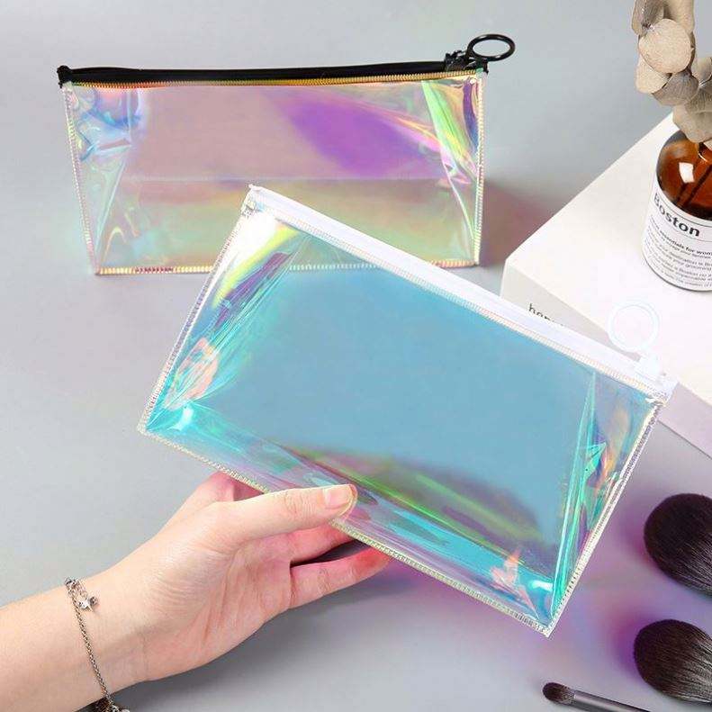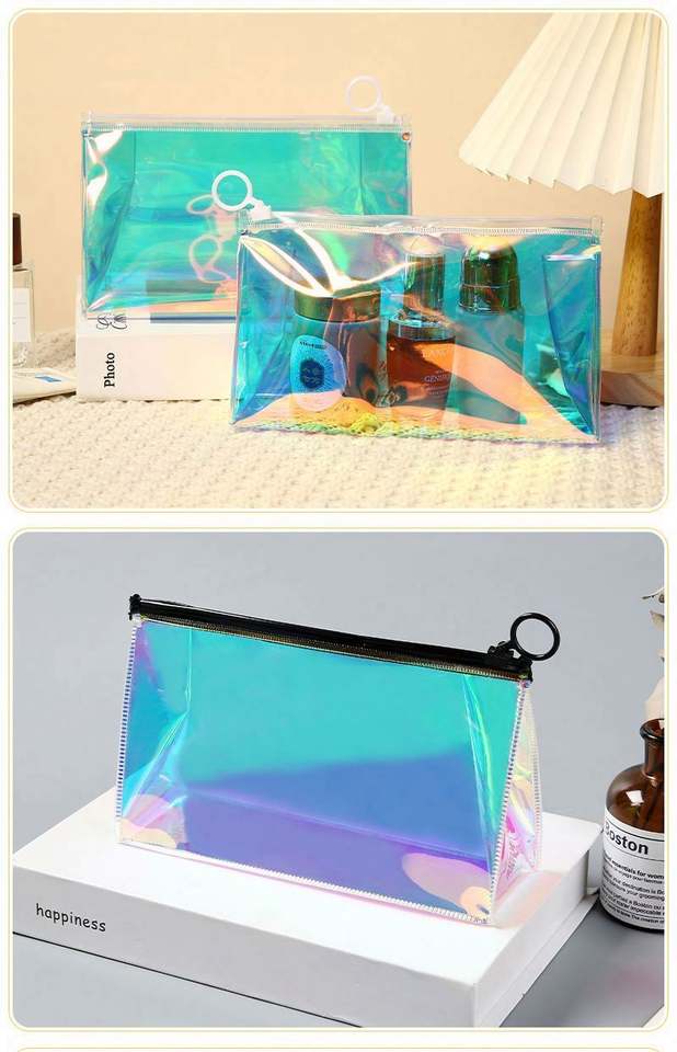ถุงซิปล็อคพีวีซีโฮโลแกรมสุดหรูหราพร้อมซิปโลหะสำหรับจัดเก็บเสื้อผ้า เครื่องสำอาง อัญมณี และเครื่องประดับ
