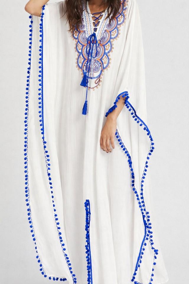 ชุดคลุมชายหาดผ้าฝ้ายปักลายหรูหรา 100% | เสื้อคลุมสไตล์โบฮีเมียนประดับพู่สำหรับใส่เดินเล่น | ชุดรีสอร์ทฤดูร้อนคอวีสุดหรู น้ำหนักเบา
