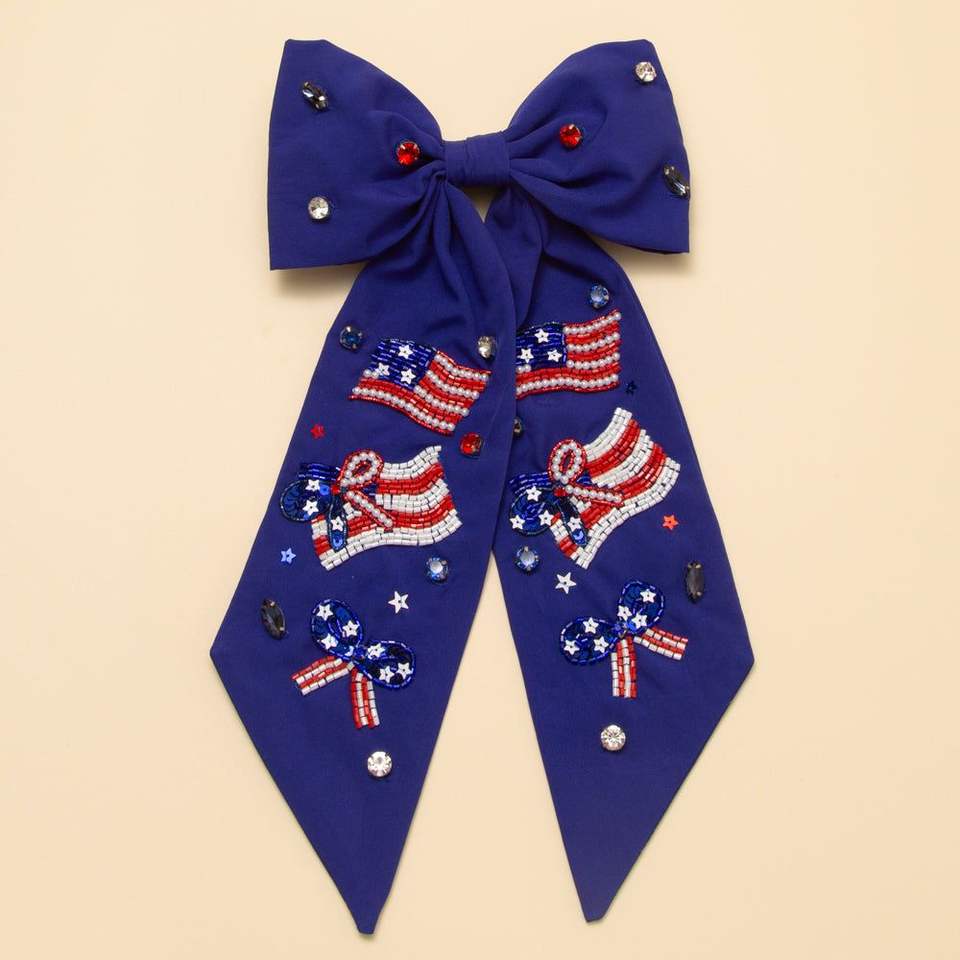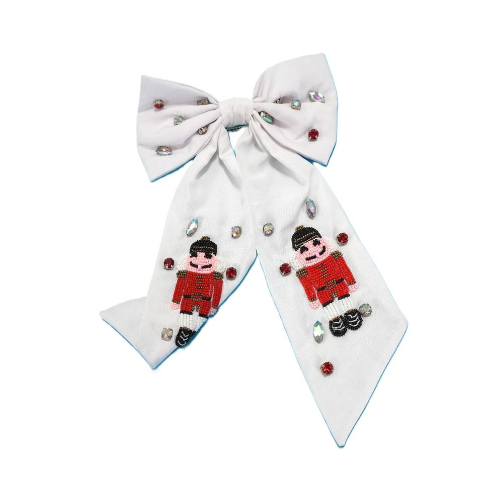 โบว์ติดผมปักลายหรูหราประดับด้วยลูกปัดหลากสี โบว์ติดผมทำมือสุดอินเทรนด์สำหรับคนรักแฟชั่น