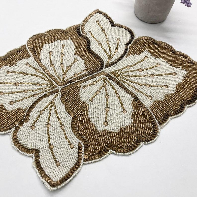 แผ่นรองจานปักลายหรูหรา เป็นมิตรกับสิ่งแวดล้อม ปรับแต่งได้ สำหรับใช้ในบ้าน จำหน่ายจำนวนมากโดย HUSSAIN CRAFTS ผลิตในอินเดีย