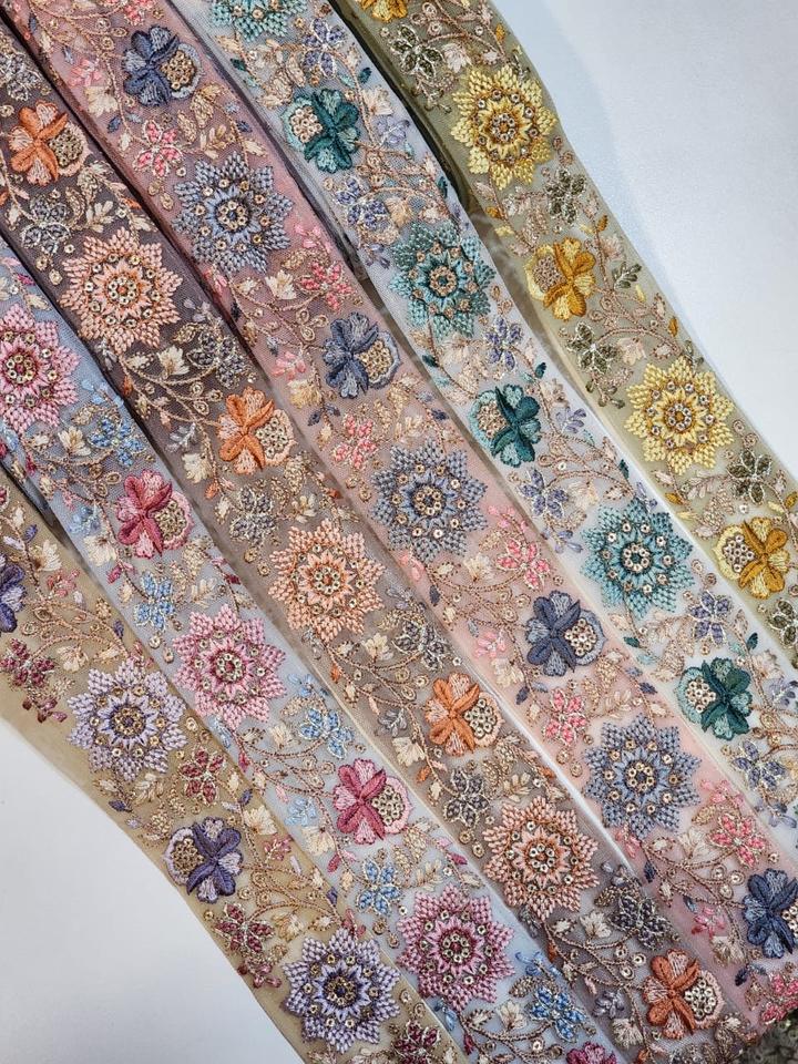 ผ้าลูกไม้ปักลายหรูหรา ริบบิ้นผ้าสำหรับชุดแต่งงาน เครื่องประดับคูตูร์ แต่งขอบด้วยลูกปัดทำมือ