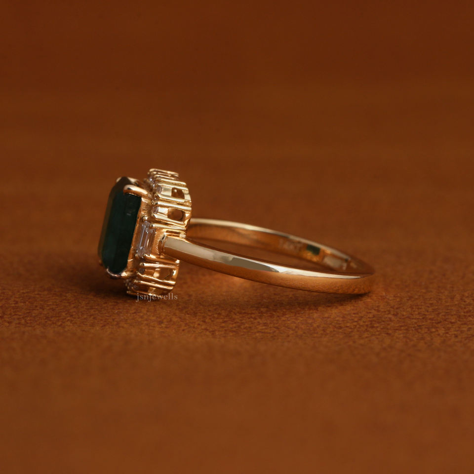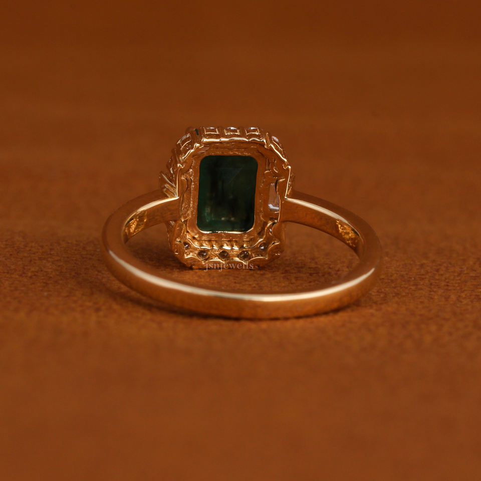 แหวนพลอยสีเขียวทรงมรกตหรูหราประดับเพชรแบบเฮโล ทองคำขาว 14K แหวนหมั้นสำหรับผู้หญิง เครื่องประดับสั่งทำพิเศษ