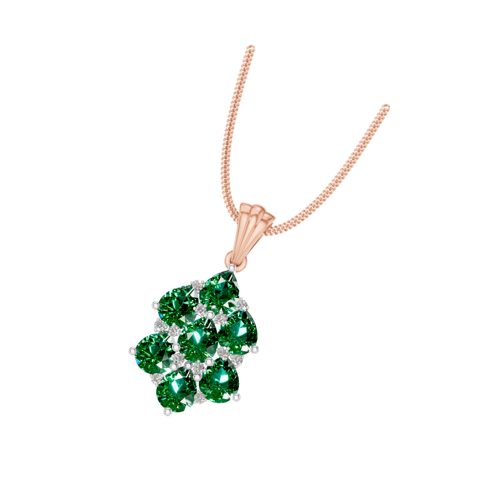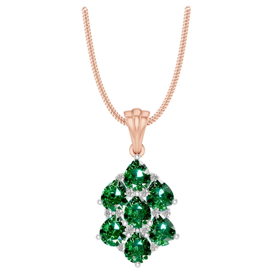 เครื่องประดับสุดหรูจี้มรกตแบบก้อนที่เป็นที่ต้องการสูงในอินเดียพร้อมลูกแพร์ตัดเพชรอัญมณีรัศมี14K 18K ทำจากกุหลาบสีขาวทอง