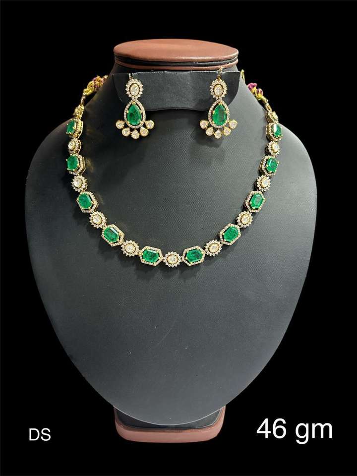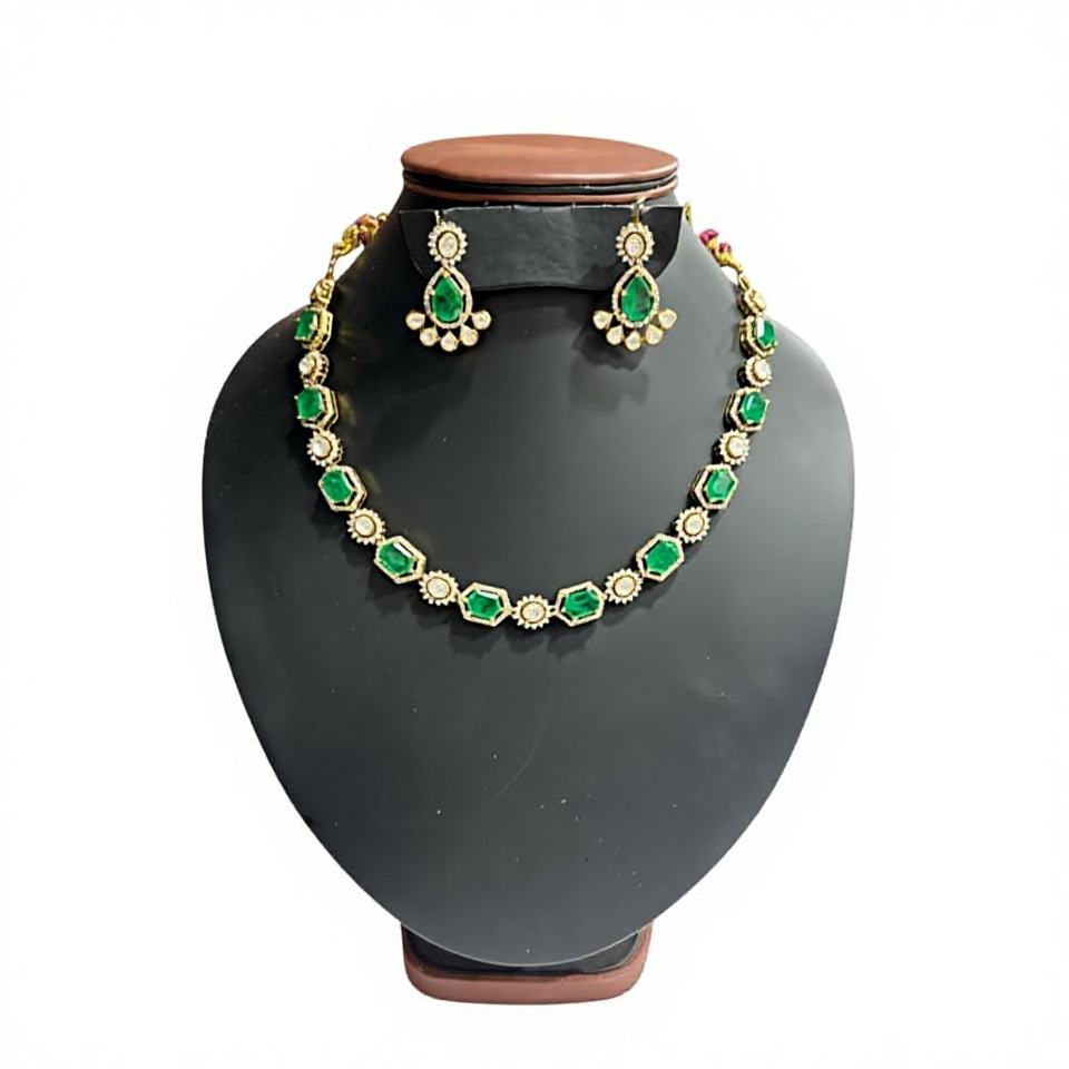 ชุดสร้อยคอและต่างหูทองคำประดับมรกตสีเขียวสดหรูหรา สไตล์อินเดีย สำหรับเจ้าสาว งานแต่งงาน งานเลี้ยง ออกแบบโดยดีไซเนอร์ วัสดุทอง/เงิน/ทองเหลือง