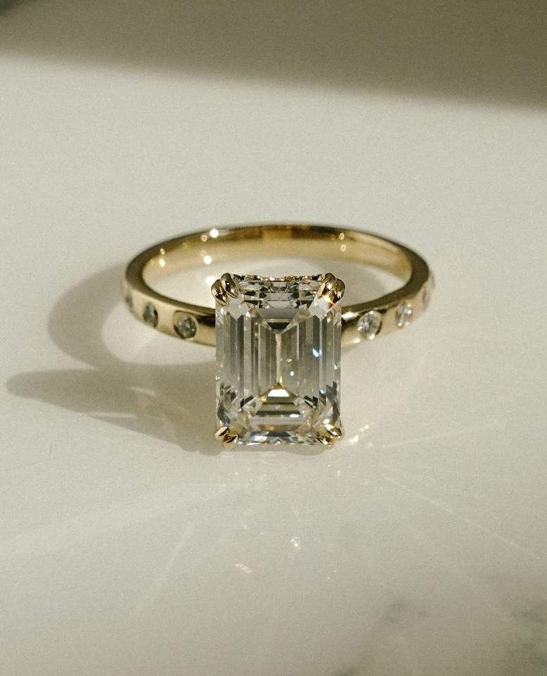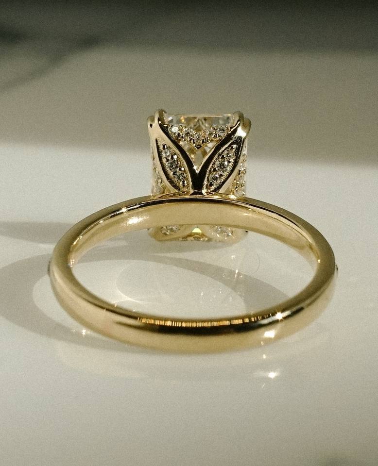 แหวนหมั้นมอสซาไนต์หรูหรา ดีไซน์เนอร์ออกแบบสำหรับงานเลี้ยงค็อกเทล ของขวัญวันครบรอบแต่งงานสำหรับผู้หญิง ทองคำแท้ 14k