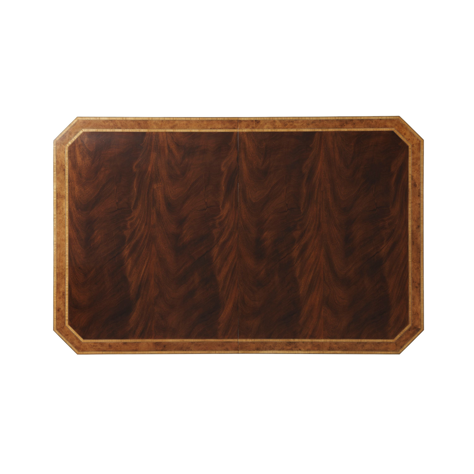 โต๊ะรับประทานอาหารสไตล์เอ็มไพร์หรูหราฐานคู่พร้อมแผ่นไม้อัดฝังด้านบน