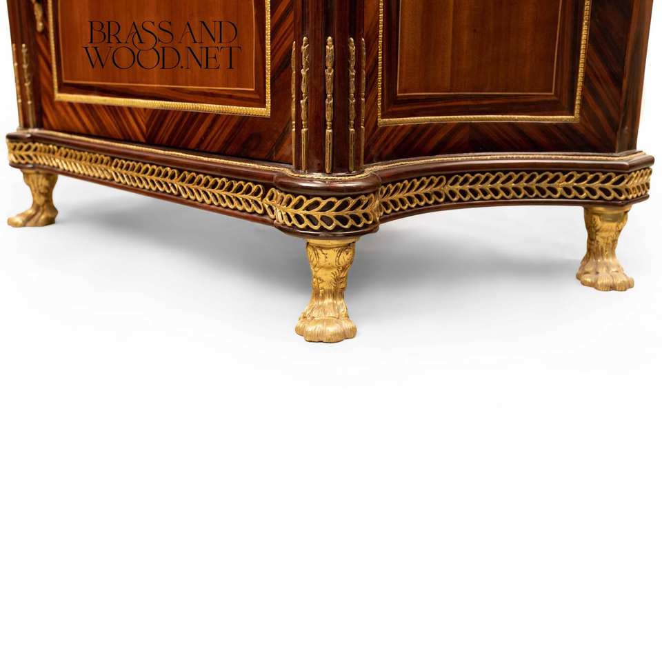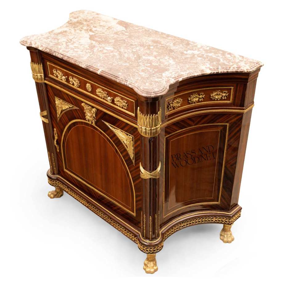 ตู้เก็บรองเท้าสไตล์หรูหราแบบเอ็มไพร์ พร้อมท็อปหินอ่อนพรีเมียม ลายไม้มะฮอกกานีสุดหรู และตกแต่งขาตู้รูปกรงเล็บสิงโตทองเหลือง