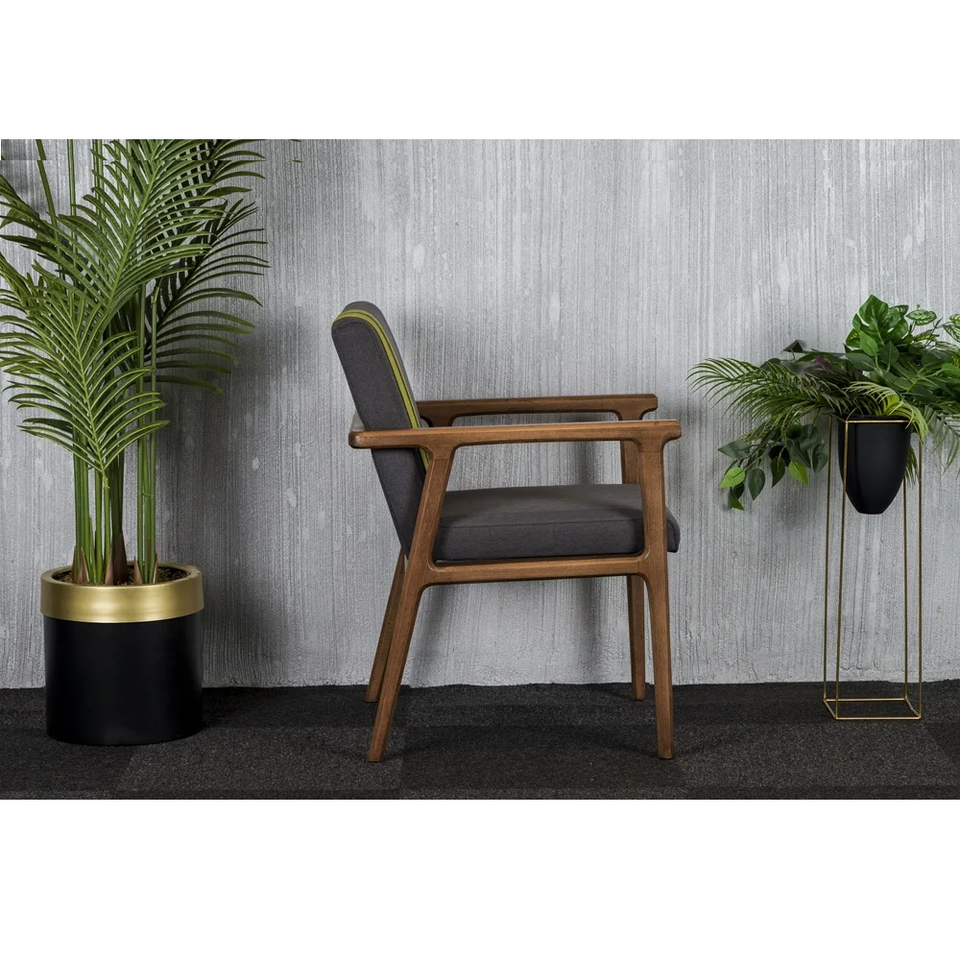 เก้าอี้เท้าแขนสไตล์ยุโรปหรูหราดีไซน์ไม้ที่เพรียวบางทนทานปรับความสบายได้สำหรับการรับประทานอาหารโรงแรมใช้งานกลางแจ้ง