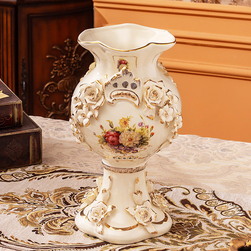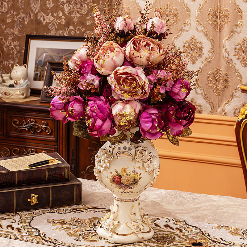 การตกแต่งแบบยุโรปหรูหรา-แจกันตั้งโต๊ะทำจากพอร์ซเลนวาดด้วยมือ