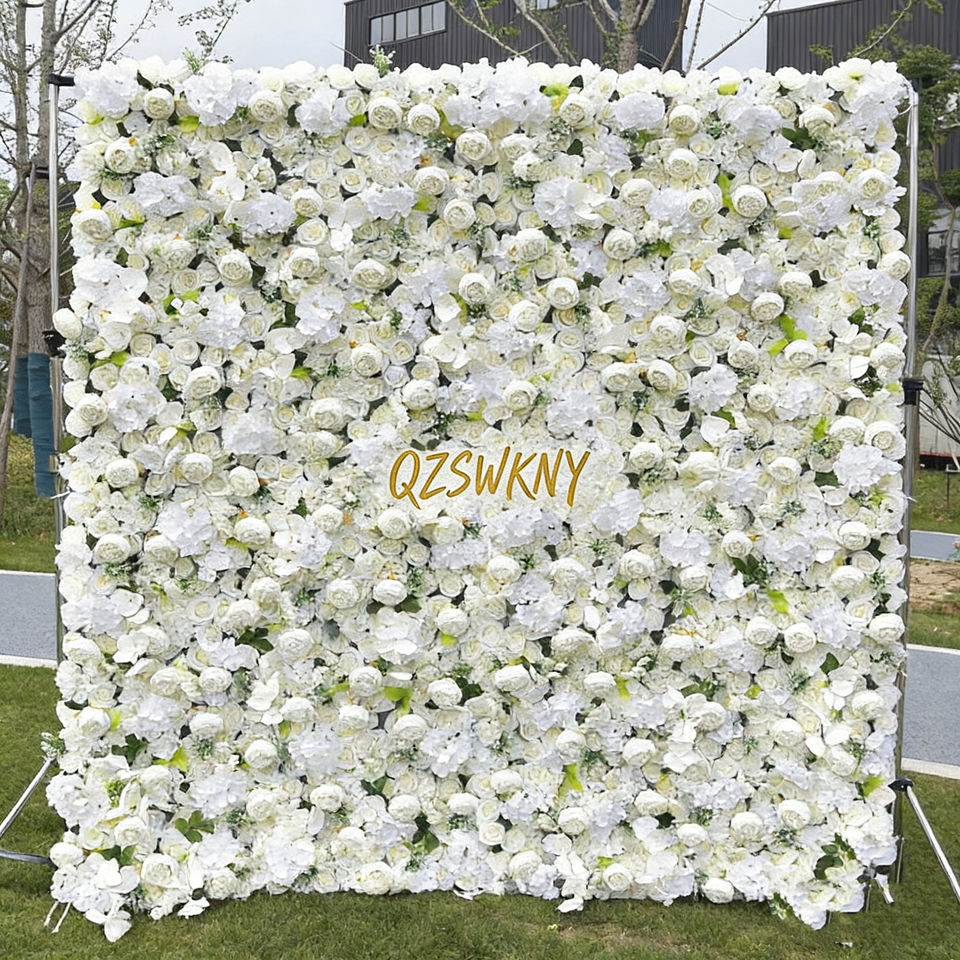ผนังดอกกุหลาบประดิษฐ์สุดหรู พร้อมใบไม้สีเขียว สำหรับตกแต่งฉากงานแต่งงาน พิธีต้อนรับ และงานอีเว้นท์