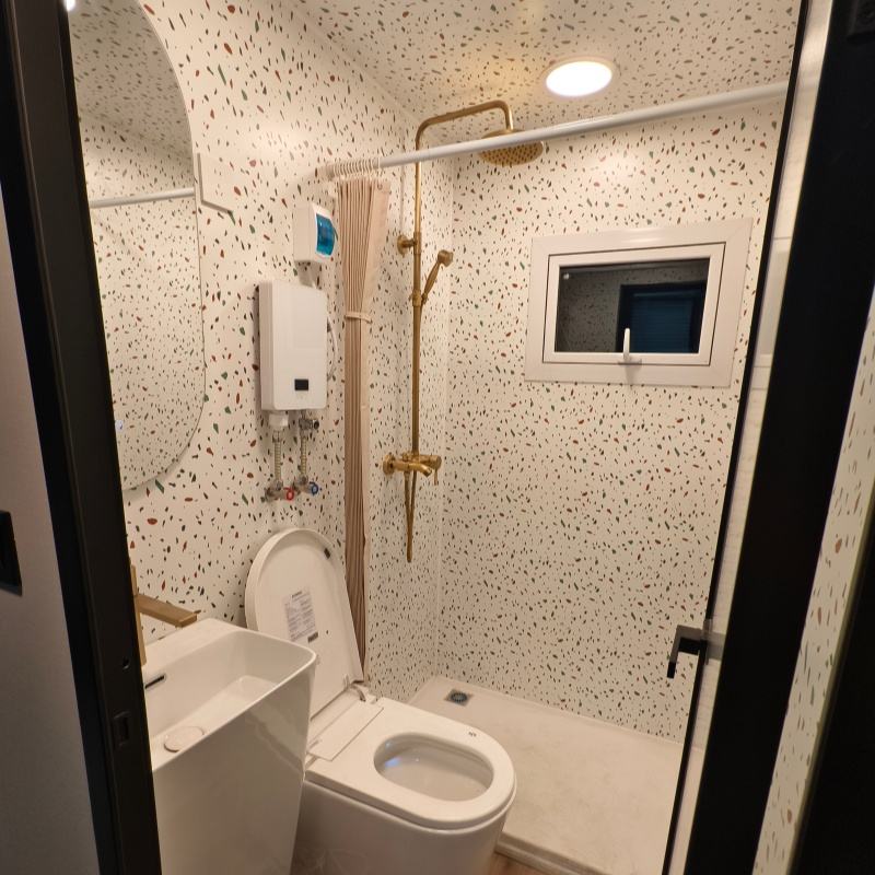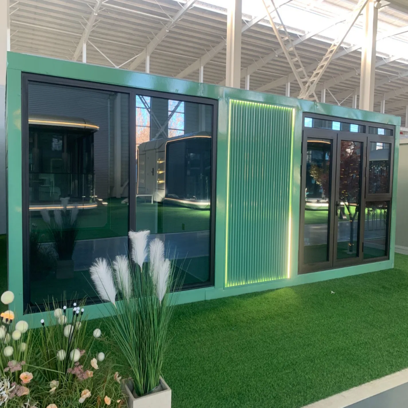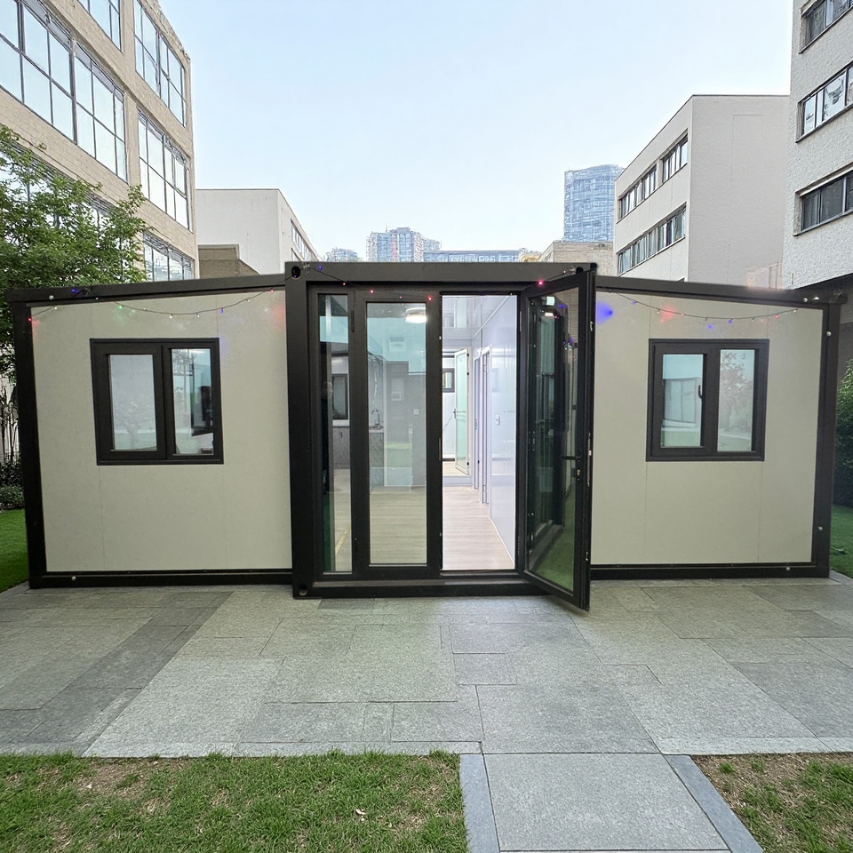 บ้านคอนเทนเนอร์หรูหราแบบขยายได้พร้อมระเบียง บ้านสำเร็จรูปขนาดเล็กทันสมัย บ้านโมดูลาร์สำเร็จรูปสำหรับแกลมปิ้งและโรงแรม