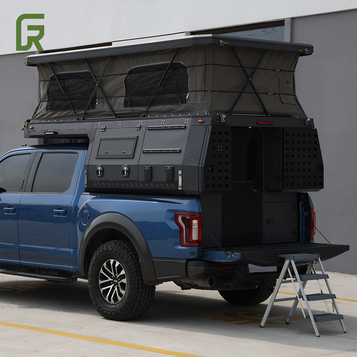 เตียงกลางแจ้งสุดหรูสำหรับการเดินทางแบบออฟโรดป๊อปอัพแบบแข็งด้านข้างสำหรับรถตั้งแคมป์รับส่งไฟเบอร์กลาส