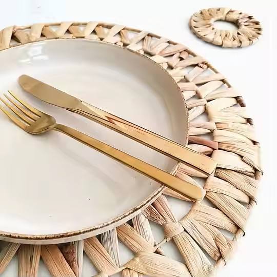 แผ่นรองจาน/ที่ชาร์จทำด้วยมือประดับด้วยงานฝีมือรูปทรงกลมของผักตบชวาที่สวยงามหรูหราใช้ตกแต่งบ้านได้อย่างสมบูรณ์แบบ