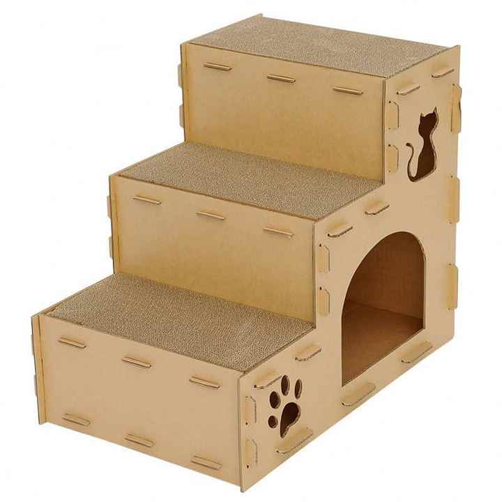 ที่ลับเล็บแมวแบบกระดาษลูกฟูกขนาดใหญ่พิเศษสุดหรู พร้อมบ้านแมวในตัวและต้นไม้แมวสำหรับทำรังและลับเล็บ